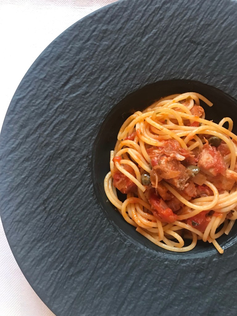 Spaghetti with tuna sauce.