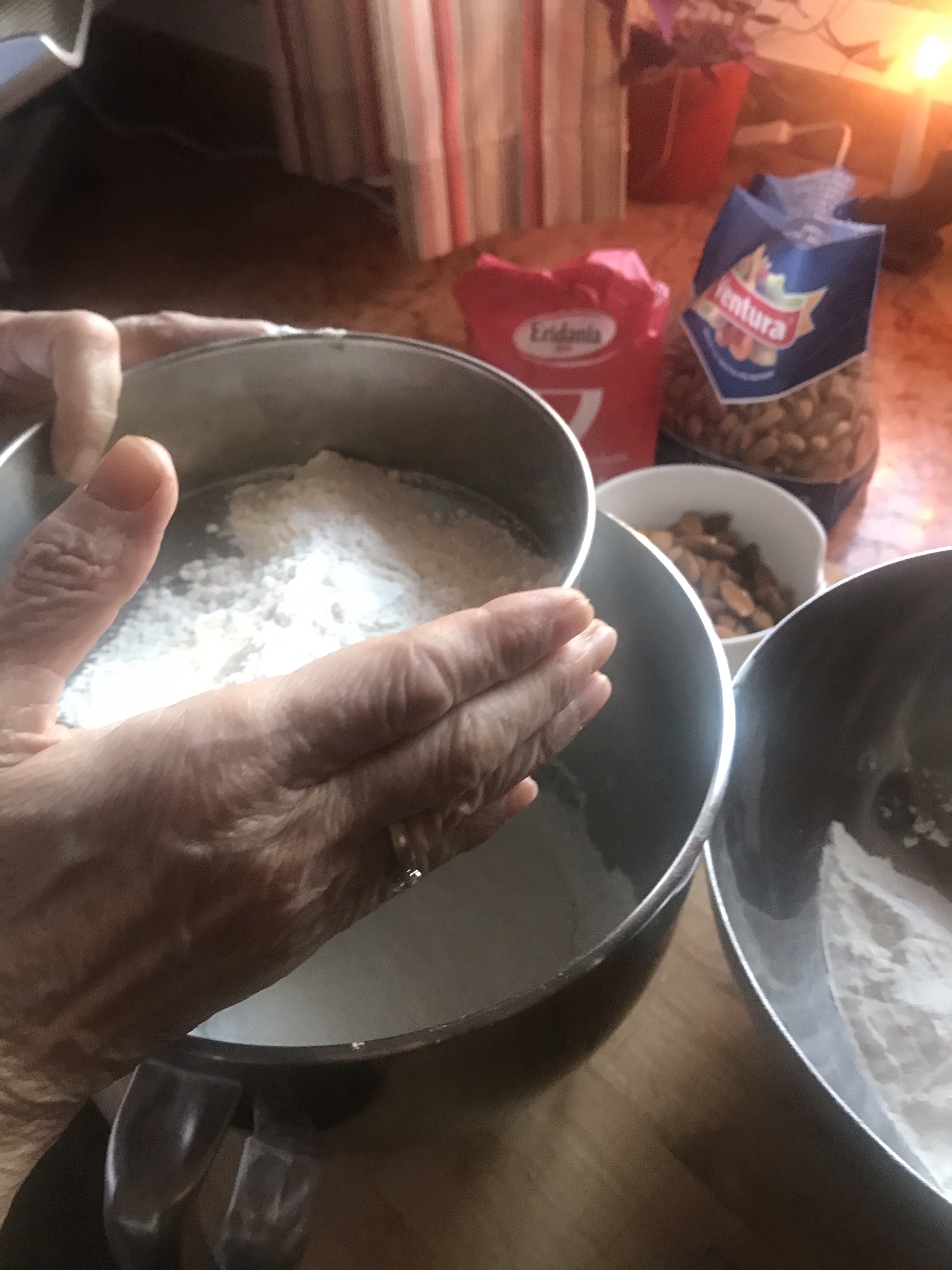 During the Christmas period these are the perfect biscuits to give as a gift together with a nice bottle of vin Santo you can’t go wrong. You can prepare them well in advance . If you store them in a tin box or an well sealed container, they will remain nice and crunchy . Obviously you can use other nuts besides almonds like pistachios, hazelnuts, walnuts or you can add some chocolate, and to make it even more Christmasy you can put some cinnamon in the dough.