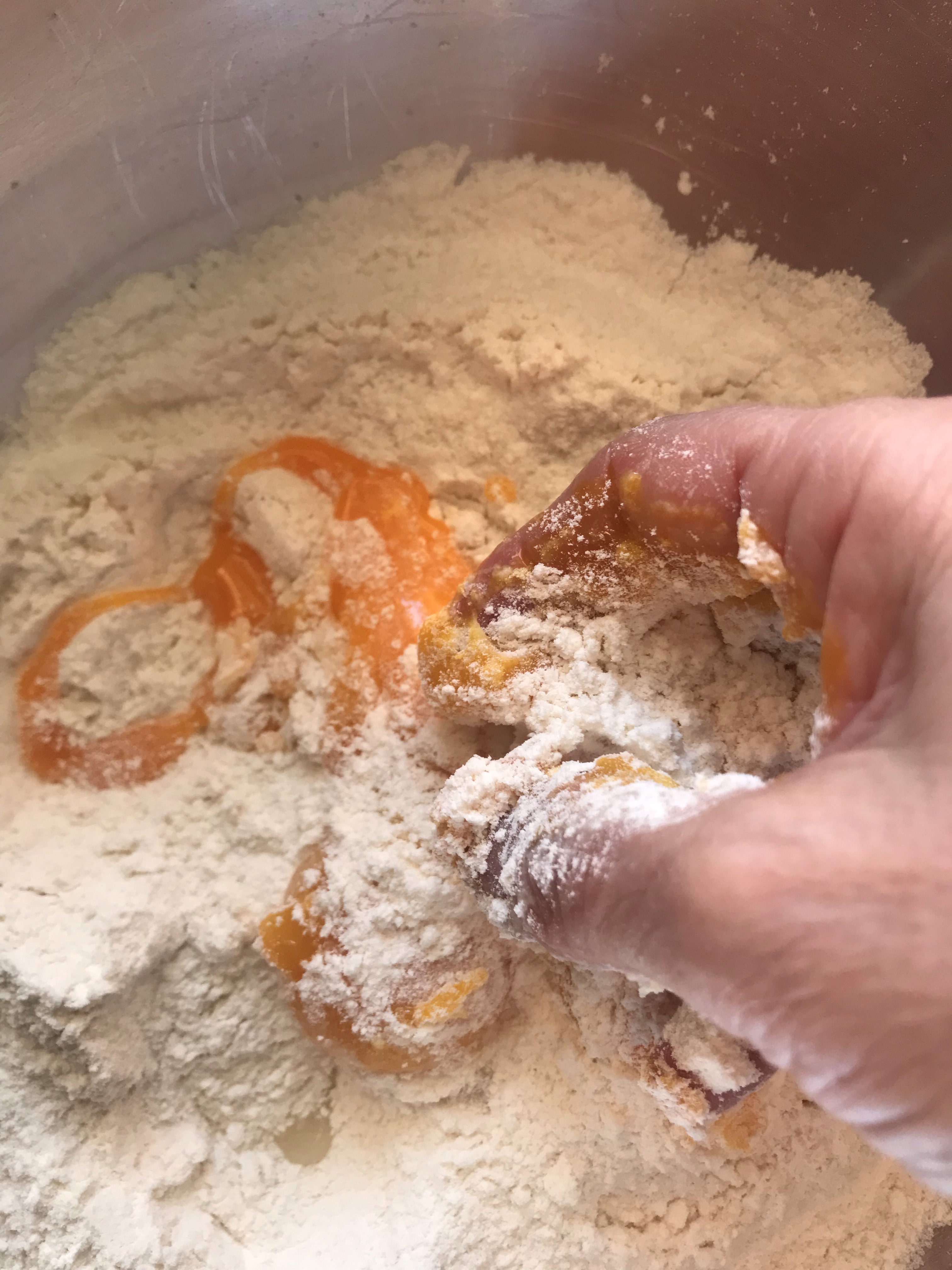 Mix the ingredients with your fingers.