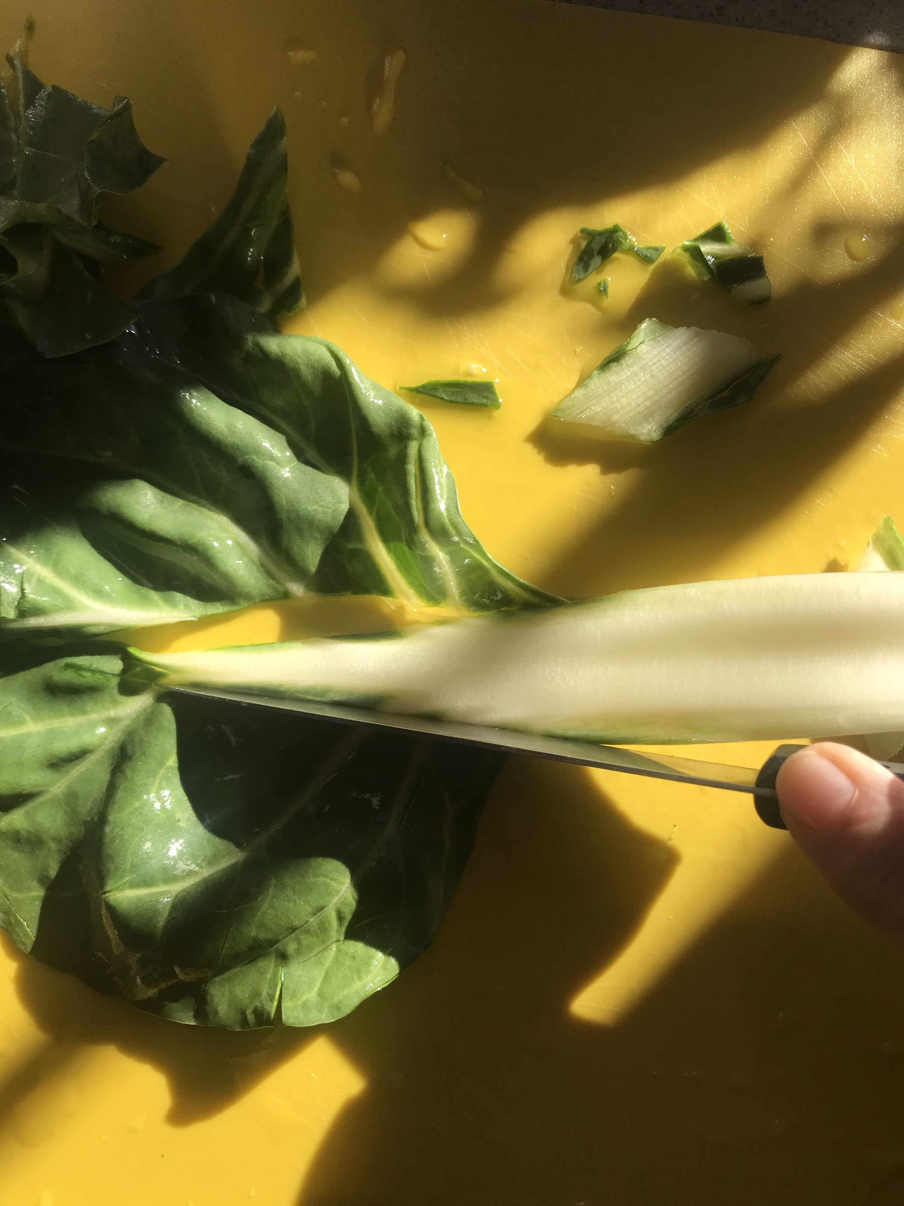 Wash the chard well, than separate the ribs from the leaves with the help of a sharp knife.