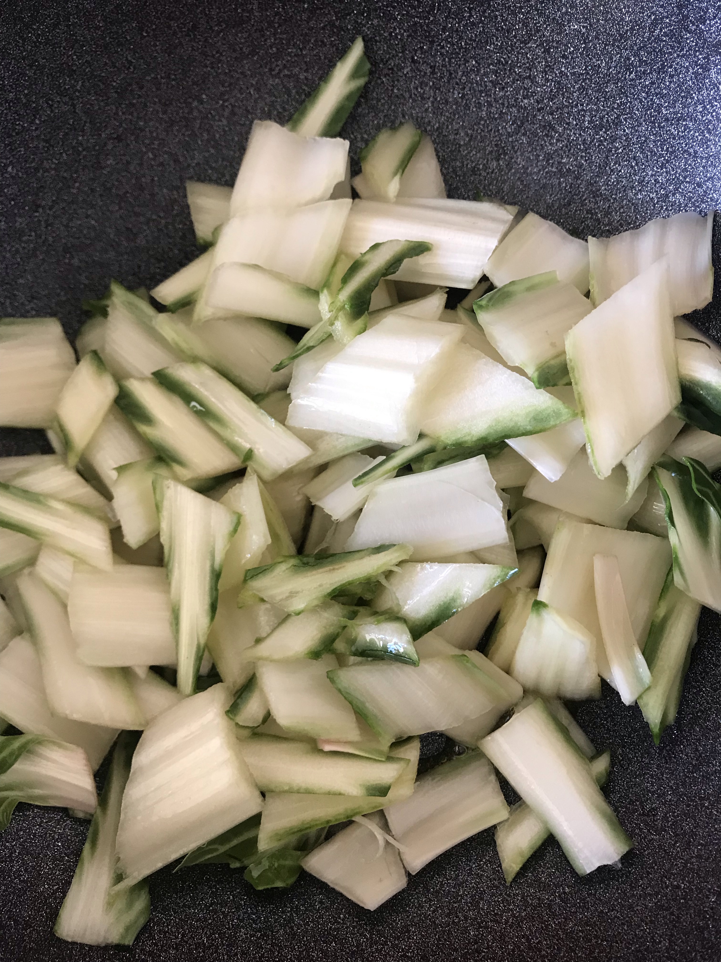 – cut the aubergines into not too thin strips.