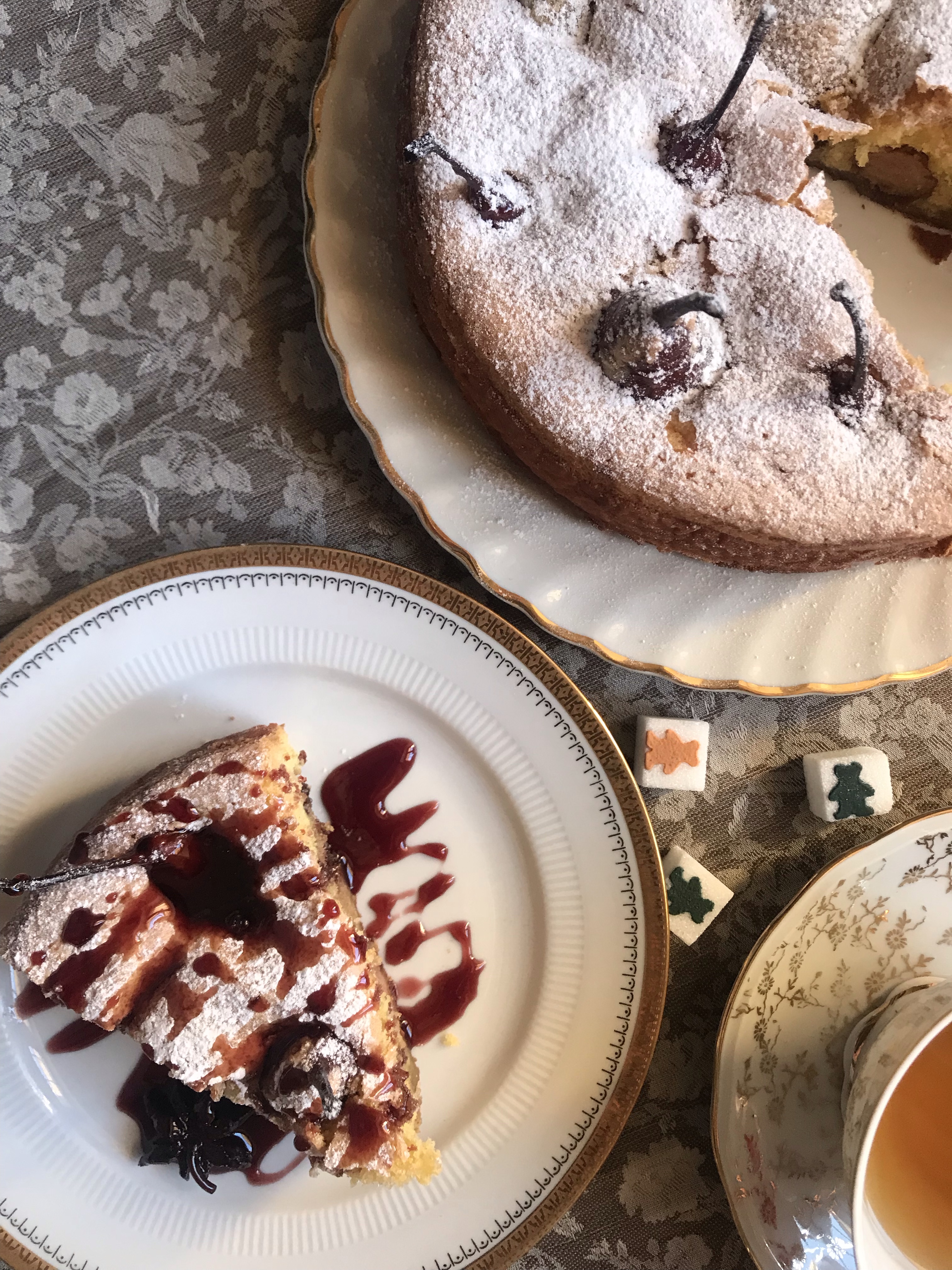 Let cool, sprinkle the cake with some icing sugar and wine reduction.
