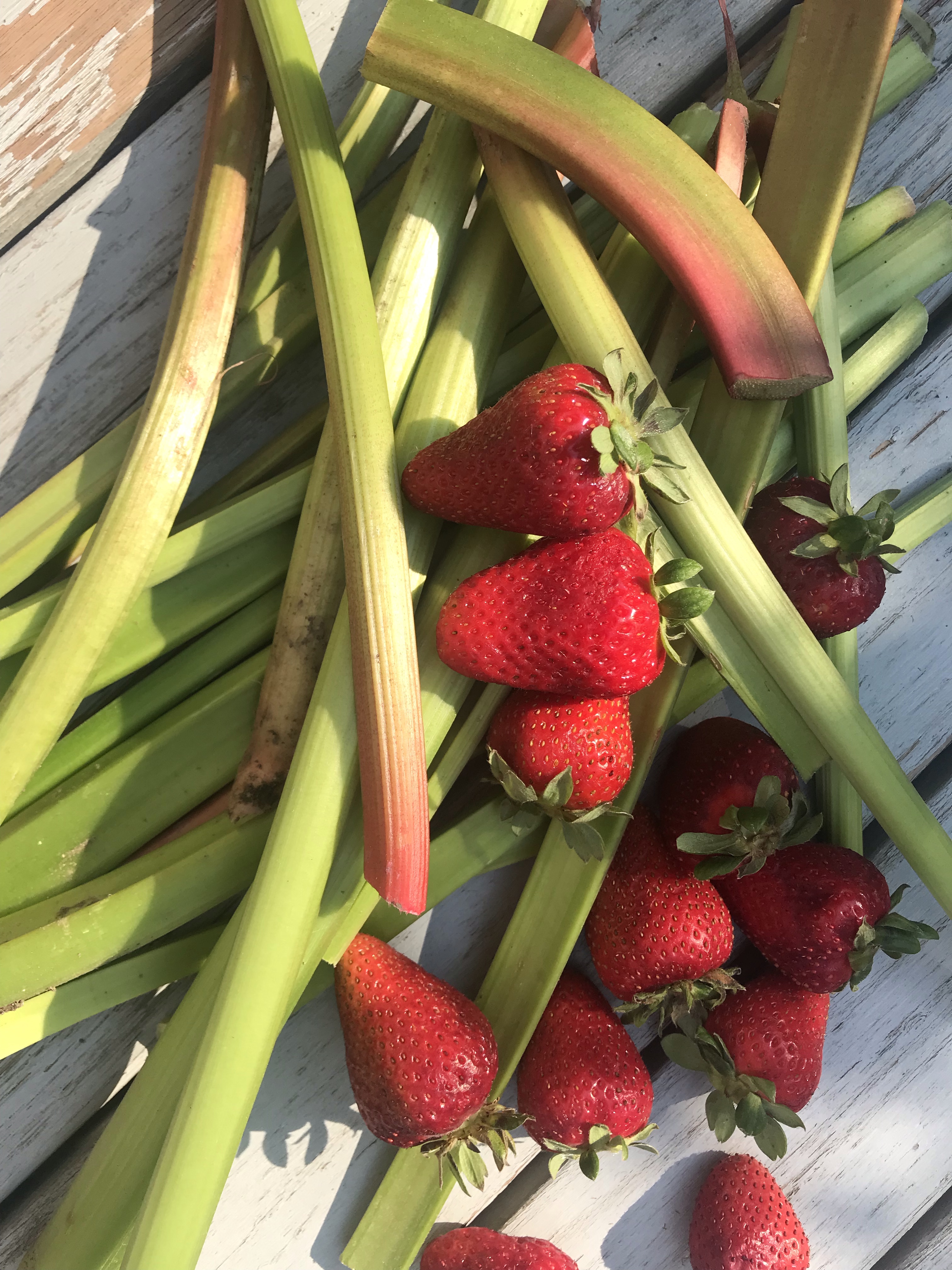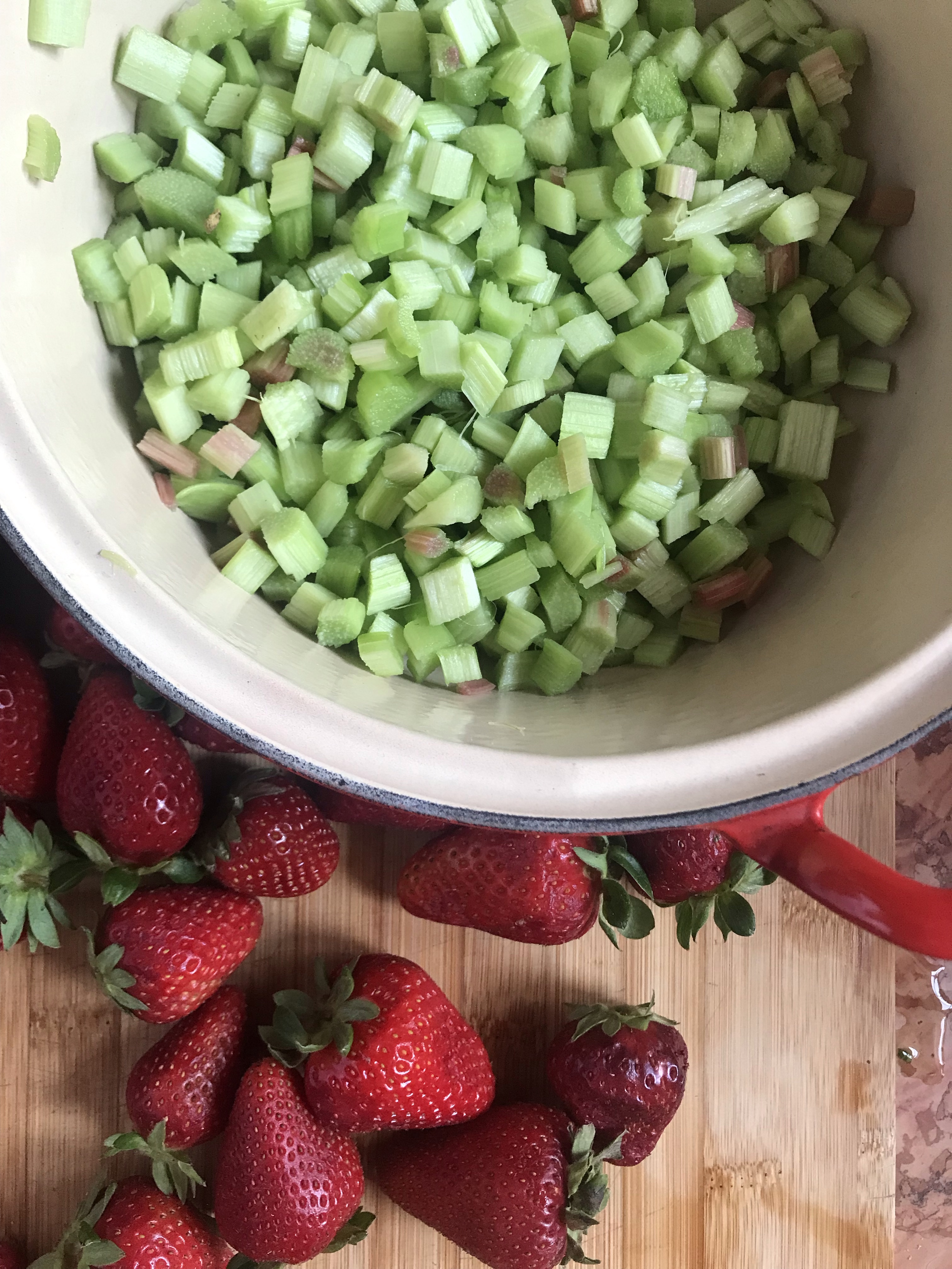 Wash your strawberries and peel your rhubarb.