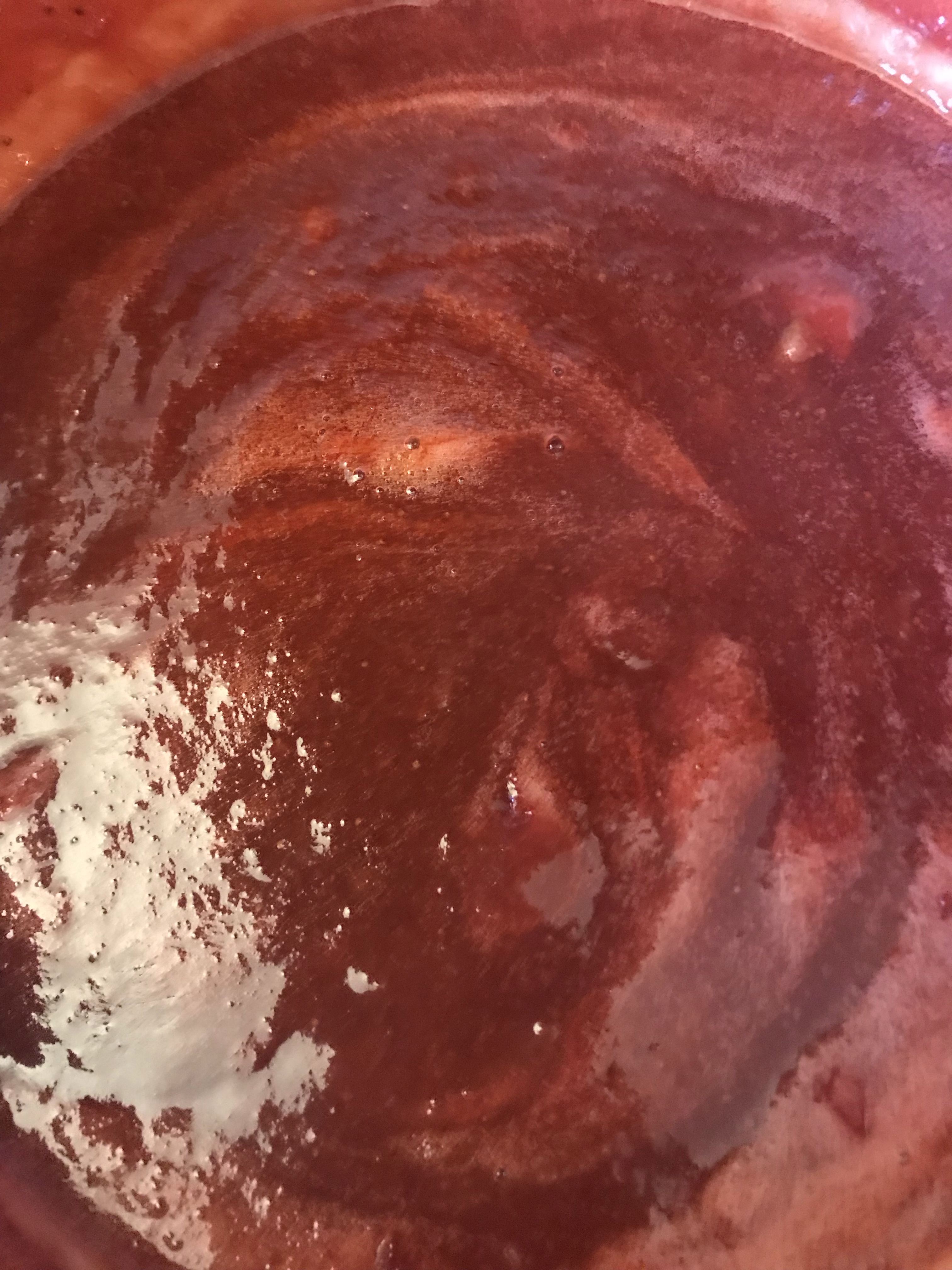 Now put the mix in a large pan over a medium heat until it’s gently boiling, while stirring . You will notice a white foam developing, no worries this doesn’t change the taste and will go away.