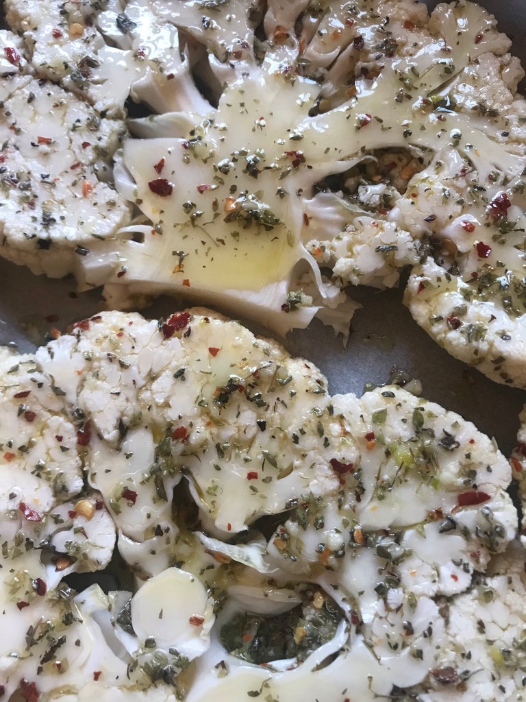 Oven roasted cauliflower steaks.